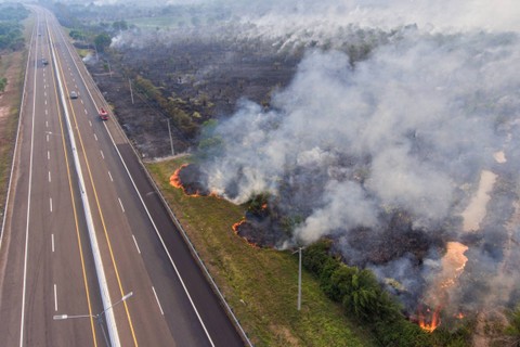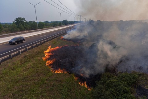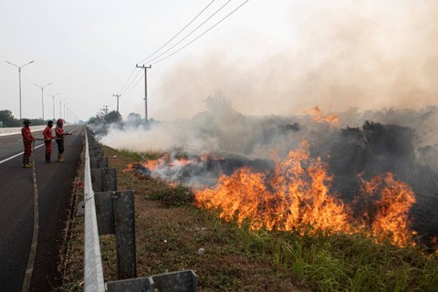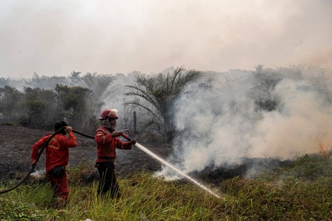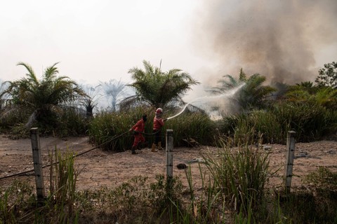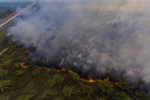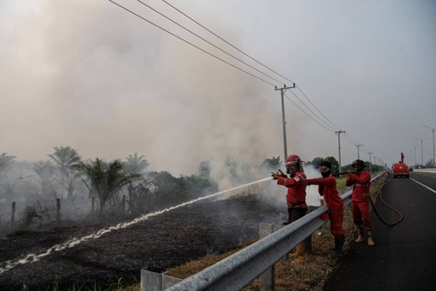 Api membakar lahan perkebunan kelapa sawit di sisi Jalan Tol Trans Sumatera (JTTS) ruas Palembang-Indralaya KM15 Palem Raya, Ogan Ilir (OI), Sumatera Selatan, Jumat (22/9). Foto: Nova Wahyudi/ANTARA FOTOPetugas dari Manggala Agni Daops Banyuasin berupaya memadamkan kebakaran lahan perkebunan kelapa sawit di sisi Jalan Tol Trans Sumatera (JTTS) ruas Palembang-Indralaya KM15 Palem Raya, Ogan Ilir (OI), Sumatera Selatan, Jumat (22/9). Foto: Nova Wahyudi/ANTARA FOTOBerdasarkan data dari satelit NASA-NOAA20, jumlah titik api di wilayah Indonesia sebanyak 3825 titik, sedangkan di Provinsi Sumatera Selatan terdapat 167 titik pada Jumat (22/9). Foto: Nova Wahyudi/ANTARA FOTOFoto: Nova Wahyudi/ANTARA FOTOFoto: Nova Wahyudi/ANTARA FOTOFoto: Nova Wahyudi/ANTARA FOTOFoto: Nova Wahyudi/ANTARA FOTOFoto: Nova Wahyudi/ANTARA FOTOFoto: Nova Wahyudi/ANTARA FOTOFoto: Nova Wahyudi/ANTARA FOTO