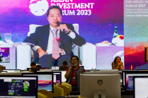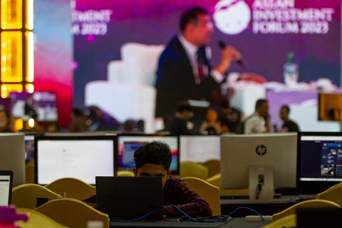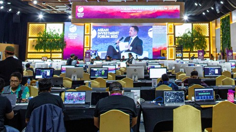 Jurnalis beraktivitas di Media Center KTT ke-43 ASEAN 2023 di JCC, Jakarta, Sabtu (2/9/2023). Foto: Media Center KTT ASEAN 2023/Antara Foto/Afriadi Hikmal