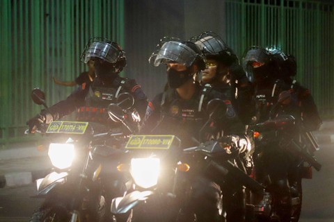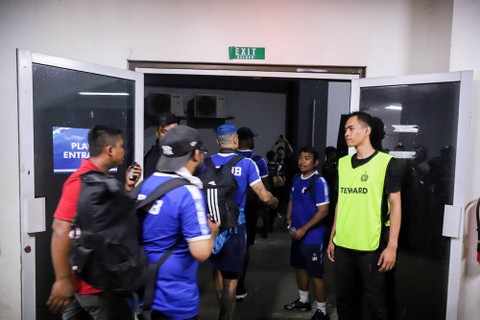 Pemain dan ofisial Persib Bandung menaiki mobil rantis usai bertanding melawan Persija Jakarta di Stadion Patriot Candrabhaga, Bekasi, Jawa Barat, Sabtu (2/9/2023). Foto: Jamal Ramadhan/kumparan
