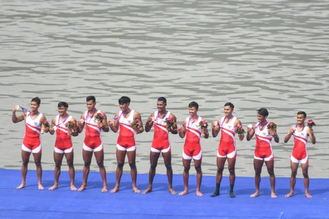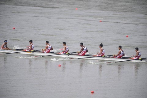Indonesia meraih medali perunggu setelah finis di urutan ketiga. Delapan pedayung Indonesia sempat menempel ketat China selepas start.