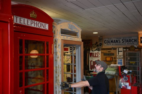 Di bengkel yang penuh dengan memorabilia bersejarah, Carl Burge dengan terampil menerapkan sentuhan akhir pada bilik telepon Inggris berwarna merah yang sedang direstorasinya.