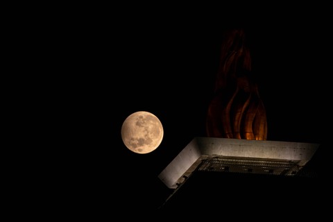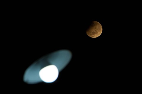 Penampakan gerhana bulan sebagian atau Parsial di langit Jakarta, Minggu (29/10/2023). Foto: Bayu Pratama S/ANTARA FOTO