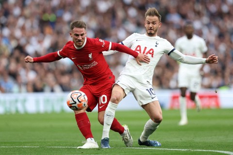 Tottenham Hotspur meraih kemenangan dramatis saat berjumpa Liverpool pada laga lanjutan Liga Inggris 2023/24. Bertanding di Tottenham Hotspur Stadium, London, Inggris, Sabtu (30/9) malam WIB, tim asuhan Ange Postecoglou menang 2-1.