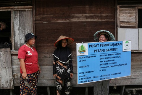 Keberadaan lahan gambut di Indonesia diprediksi telah ditemukan lebih dari 300 tahun yang lalu saat penjelajah menemukan sebaran lahan gambut di Sumatera dan Kalimantan. Foto: Makna Zaezar/ANTARA FOTOKedua pulau inilah yang hingga sekarang memiliki sebaran lahan gambut yang luas di Indonesia diikuti dengan pulau Papua. Gambut adalah jenis lahan basah yang terbentuk dari timbunan material organik berupa sisa-sisa pohon, rerumputan, lumut dan jasad hewan yang membusuk di dalam tanah. Foto: Makna Zaezar/ANTARA FOTOTheti (41) seorang warga asli Desa Mantangai Hilir, Kapuas, Kalimantan Tengah adalah salah satu wanita asli berdarah Dayak Kapuas yang berupaya mengolah lahan tanah gambut dengan memanfaatkan pekarangan yang ada di sekitar pemukiman rumahnya. Foto: Makna Zaezar/ANTARA FOTODengan bermodalkan ilmu dari hasil pelatihan dan pendidikan yang difasilitasi oleh Badan Restorasi Gambut dan Mangrove (BRGM) Indonesia pada tahun 2018, Theti mulai menyebarluaskan ilmu yang dia dapat dengan membentuk Kelompok Wanita Tani (KWT) Tampelas Raya dengan berisikan 10 orang. Foto: Makna Zaezar/ANTARA FOTOTheti bersama sembilan anggota KWT lainnya secara konsisten menerapkan hasil pendidikannya. Foto: Makna Zaezar/ANTARA FOTOBerbagai jenis tanaman sayuran dan buah seperti tomat, sawi, jeruk, cabai, terong, dan kacang panjang ditanam menggunakan bahan organik dengan pengelolaan lahan tanpa bakar (PLTB) sehingga dapat mencegah bahaya bencana kebakaran hutan dan lahan (karhutla). Foto: Makna Zaezar/ANTARA FOTOCerita keberhasilan KWT Tampelas Raya dalam mengolah tanah gambut tanpa membakar telah membawa Theti mempresentasikan upaya yang dilakukan kesejumlah negara di Asia Tenggara dan Eropa. Foto: Makna Zaezar/ANTARA FOTOFoto: Makna Zaezar/ANTARA FOTOFoto: Makna Zaezar/ANTARA FOTO
