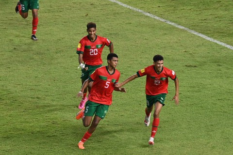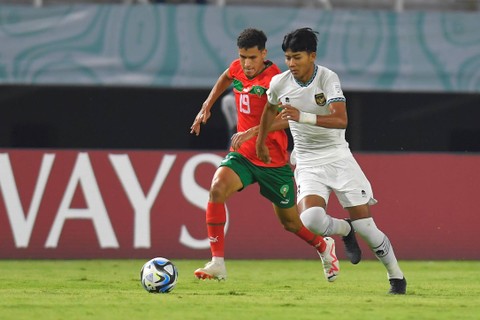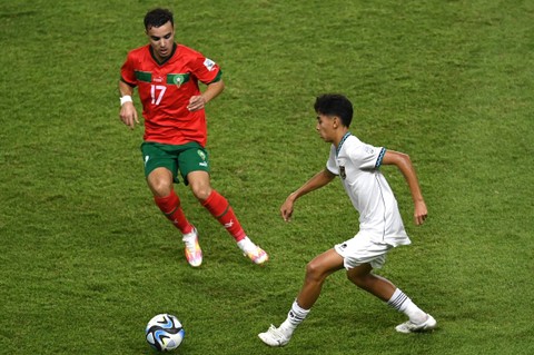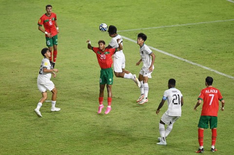 Timnas U-17 Indonesia kalah 1-3 atas Maroko pada matchday ketiga Piala Dunia di Stadion Gelora Bung Tomo, Surabaya, Kamis (16/11) malam WIB. Foto: Aditya Pradana Putra/ANTARA FOTOMaroko sudah bisa membuat gol via Anas Alaoui melalui penalti di menit ke-29. Foto: Aditya Pradana Putra/ANTARA FOTOMaroko sudah bisa membuat gol via Anas Alaoui melalui penalti di menit ke-29. Foto: Aditya Pradana Putra/ANTARA FOTOMaroko sudah bisa membuat gol via Anas Alaoui melalui penalti di menit ke-29. Foto: Aditya Pradana Putra/ANTARA FOTOGol ketiga Maroko berhasil tercipta di menit ke-64 oleh Mohammed Zine El Abidine. Foto: Aditya Pradana Putra/ANTARA FOTOSkor menjadi 3-1 dan bertahan hingga selesai. Foto: Aditya Pradana Putra/ANTARA FOTOKekalahan ini membuat Indonesia menempati posisi tiga klasemen Grup A dengan dua poin. Foto: Aditya Pradana Putra/ANTARA FOTOKans pasukan Bima Sakti ke 16 besar sangatlah kecil. Foto: Aditya Pradana Putra/ANTARA FOTOTimnas U-17 masih bisa lolos via posisi tiga terbaik, jika duel Selandia Baru vs Meksiko di Grup F dan Burkina Faso vs Korsel di Grup E berakhir imbang. Foto: Aditya Pradana Putra/ANTARA FOTOJika salah satu laga tersebut ada yang raih tiga poin, Timnas U-17 gugur. Foto: Aditya Pradana Putra/ANTARA FOTO
