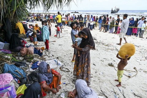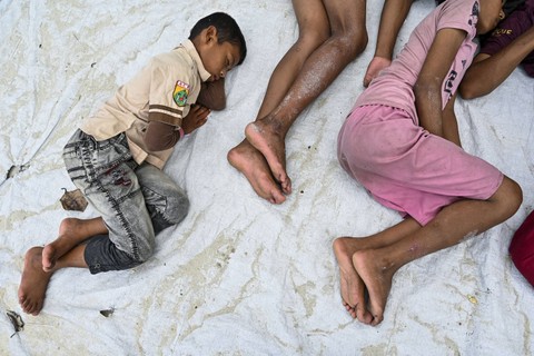 Pengungsi Rohingya yang baru tiba beristirahat di sebuah pantai di pulau Sabang, provinsi Aceh, pada 2 Desember 2023. Foto: CHAIDEER MAHYUDDIN / AFPFoto: CHAIDEER MAHYUDDIN / AFPFoto: CHAIDEER MAHYUDDIN / AFPFoto: CHAIDEER MAHYUDDIN / AFPFoto: CHAIDEER MAHYUDDIN / AFP