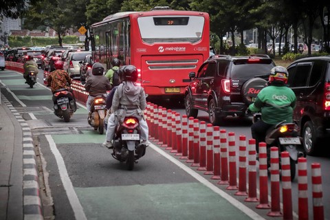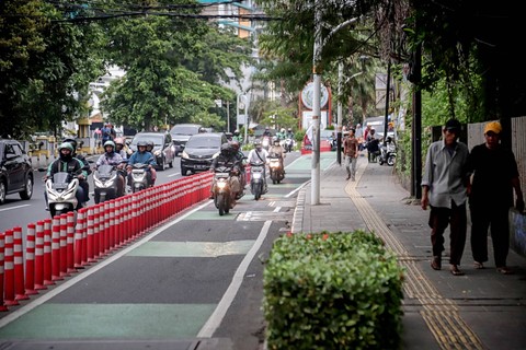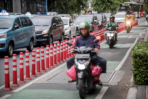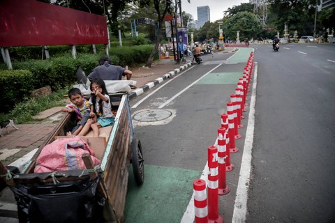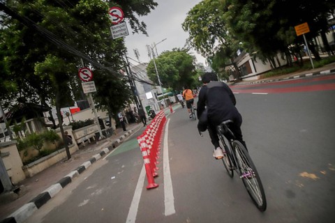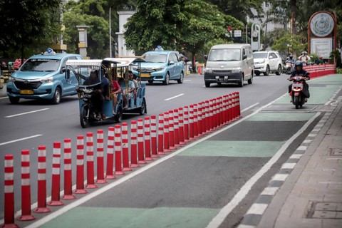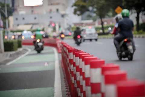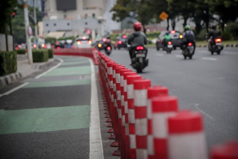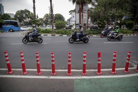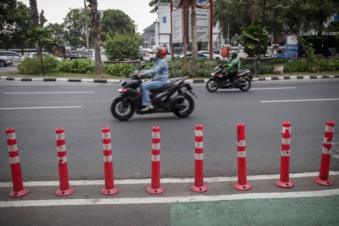 Foto: Kondisi Stik Pembatas Jalur Sepeda di Kawasan Kwitang Jakarta