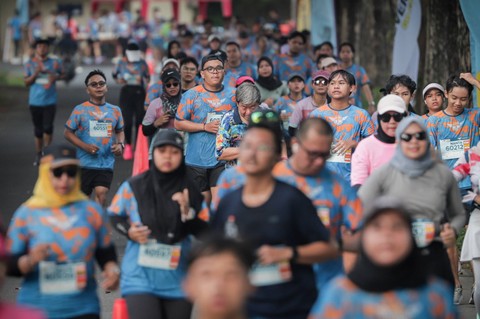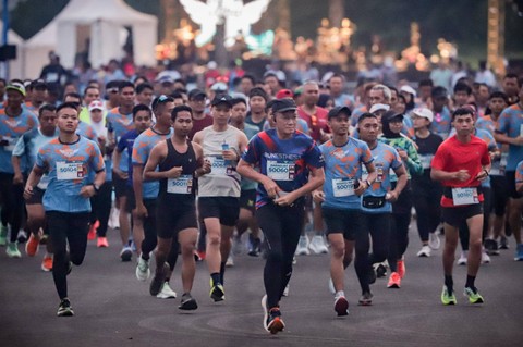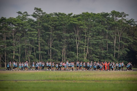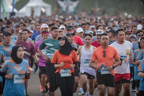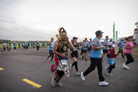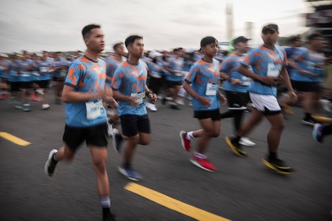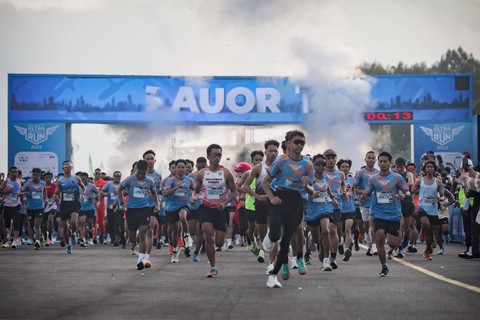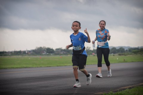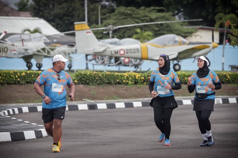 Peserta mengikuti lomba lari 21K, 10K dan 5K pada ajang Adisutjipto Urban Obstacle Run (AUOR) 2023 di kawasan Lanud Adisutjipto, Yogyakarta, Jawa Tengah, Minggu (3/12/2023). Foto: Jamal Ramadhan/kumparan
