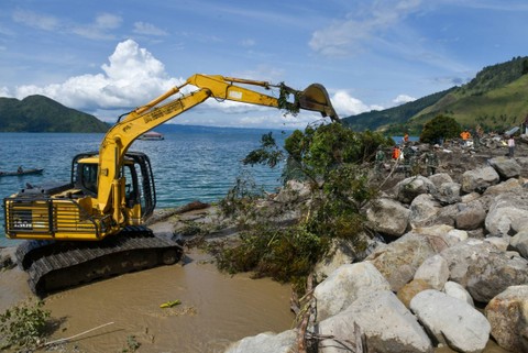 Petugas SAR melanjutkan pencarian korban akibat bencana tanah longsor di kawasan perairan Danau Toba di Desa Simangulampe, Humbang Hasundutan, Sumatera Utara, Jumat (8/12). Foto: Fransisco Carolio/ANTARA FOTOMemasuki hari ketujuh, pencarian 10 korban bencana longsor di lokasi tersebut dibagi dalam tiga sektor, pertama melakukan penyelaman dan penyisiran permukaan perairan Danau Toba, sektor dua dan tiga pencarian dilakukan dengan alat berat. Foto: Fransisco Carolio/ANTARA FOTODalam bencana yang terjadi pada Jumat (1/12) ini, 12 orang dinyatakan hilang. Foto: Fransisco Carolio/ANTARA FOTOBaru dua yang ditemukan dalam kondisi meninggal dunia. Foto: Fransisco Carolio/ANTARA FOTO