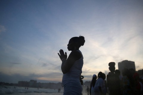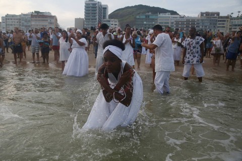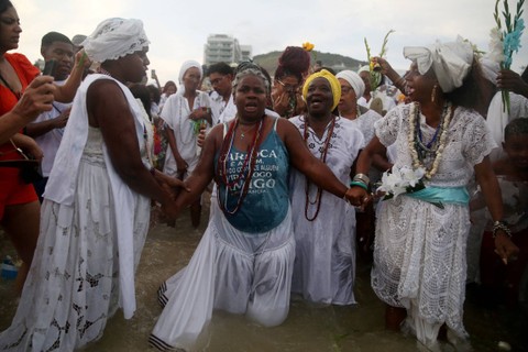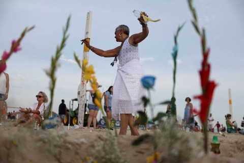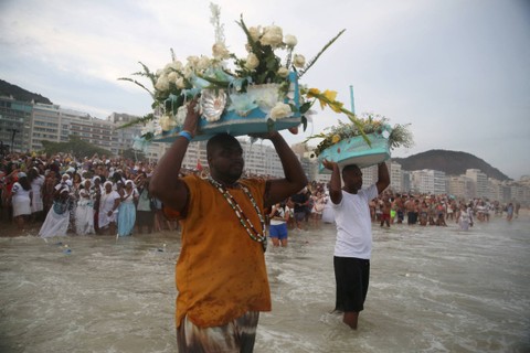 Ratusan orang penganut agama Afro-Brasil berkumpul di pantai Copacabana yang ikonik di Rio de Janeiro pada hari Jumat (29/12), untuk memberikan penghormatan kepada Yemanja, ratu laut Afro-Brasil, menjelang tahun baru.