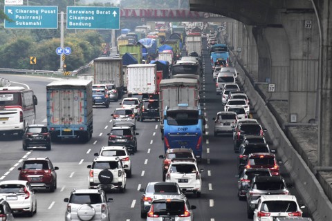Sejumlah kendaraan pemudik melintas di Jalan Tol Jakarta-Cikampek di Kabupaten Karawang , Jawa Barat, Sabtu (23/12/2023). Foto: Fakhri Hermansyah/ANTARA FOTO