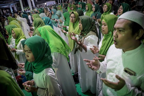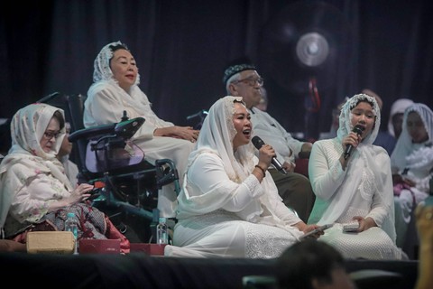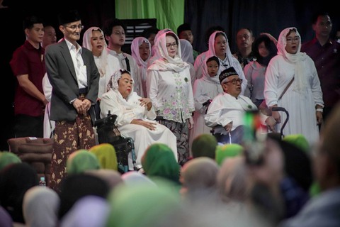 Suasana Haul ke-14 KH Abdurrahman Wahid (Gus Dur) di Ciganjur, Jakarta Selatan, Sabtu (16/12/2023). Foto: Jamal Ramadhan/kumparanIstri Gus Dur, Sinta Nuriyah (tengah), pada acara Haul ke-14 KH Abdurrahman Wahid (Gus Dur) di Ciganjur, Jakarta Selatan, Sabtu (16/12/2023). Foto: Jamal Ramadhan/kumparan