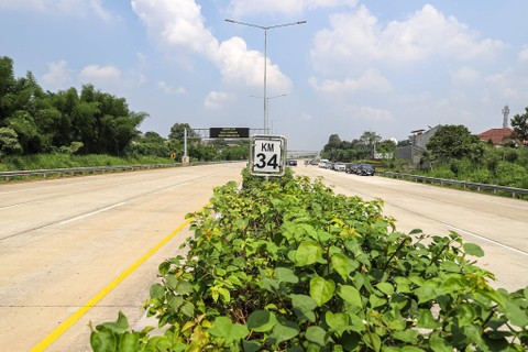Suasana Jalan Tol Cinere-Serpong Seksi 2 di Limo, Depok, Jawa Barat, Senin (18/12).