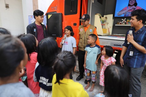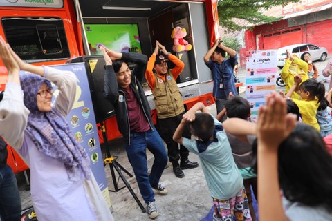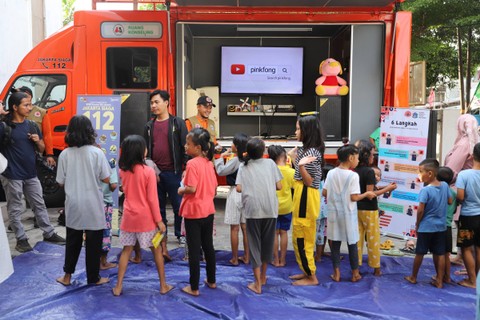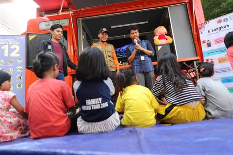 Dalam kegiatan ini, Tim Reaksi Cepat (TRC) BPBD Provinsi DKI Jakarta mengajak anak-anak lakukan berbagai kegiatan seperti menyanyi, berjoget bersama dan mewarnai.