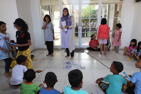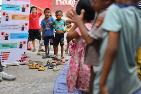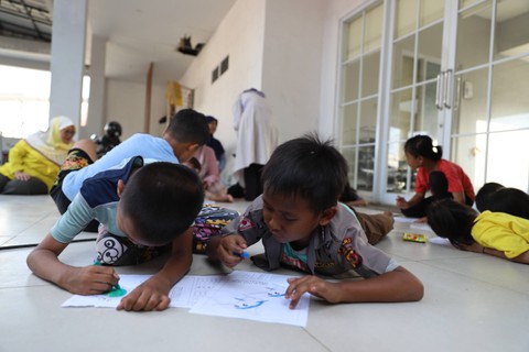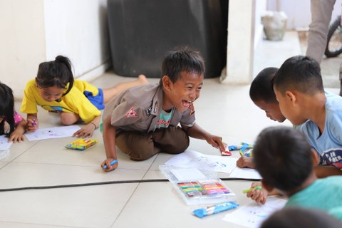 Sejumlah anak korban kebakaran di Jalan Manggarai Selatan mengikuti trauma healing Kelurahan Manggarai, Tebet, Jakarta Selatan, Minggu (17/12/2023). Foto: Iqbal Firdaus/kumparan