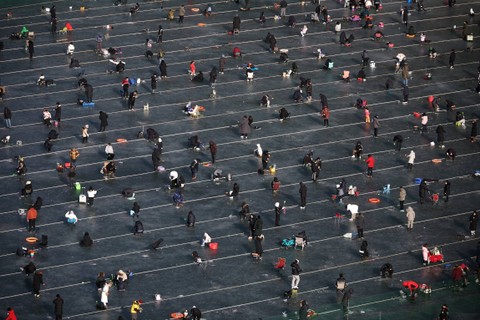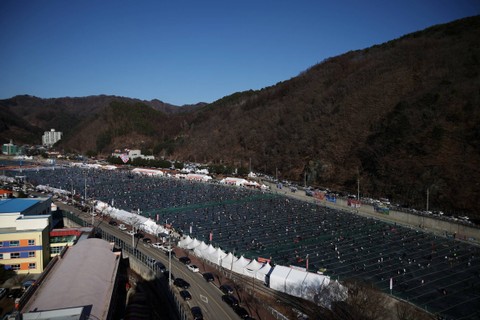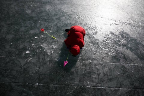 Festival es Hwacheon tahunan di Korea Selatan dimulai pada Sabtu (6/1), di tengah kekhawatiran terhadap pemanasan global. Foto: Kim Hong-Ji/REUTERSPada pukul 17.00 waktu setempat, lebih dari seratus ribu penduduk lokal dan wisatawan asing berkumpul dalam festival tersebut pada hari pertama. Foto: Kim Hong-Ji/REUTERSPengunjung terlihat menikmati memancing di es di danau beku dan menangkap ikan dengan tangan. Foto: Kim Hong-Ji/REUTERSSuhu terendah di Hwacheon adalah -6,9 derajat Celcius pada Sabtu pagi, yang merupakan suhu di atas rata-rata, menurut badan cuaca. Foto: Kim Hong-Ji/REUTERS"Benar bahwa pemanasan global menyulitkan kami menyelenggarakan festival Sancheoneo," kata Wali Kota Hwacheon Choi Moon-soon kepada Reuters. Foto: Kim Hong-Ji/REUTERSChoi menambahkan bahwa hujan yang tidak terduga sebelum festival dimulai berarti danau tersebut tidak memiliki ketebalan salju seperti biasanya yaitu 30 cm, namun malah mendekati lebih dari 20 cm, yang merupakan ketebalan minimum untuk festival. Foto: Kim Hong-Ji/REUTERSPihak penyelenggara mengatakan ketebalan tahun ini mencapai 23cm. Foto: Kim Hong-Ji/REUTERSKota ini menggunakan metode pengendalian ketinggian air untuk mengatasi pemanasan global dan pola cuaca yang tidak dapat diprediksi sehingga danau dapat membeku seiring berjalannya waktu. Foto: Kim Hong-Ji/REUTERSFoto: Kim Hong-Ji/REUTERS