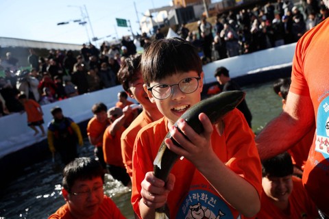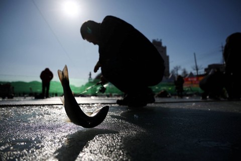 Festival memancing di es Hwacheon tahunan di Korea Selatan dimulai pada Sabtu (6/1), di tengah kekhawatiran terhadap pemanasan global.