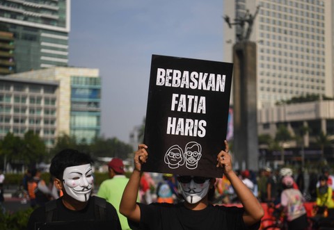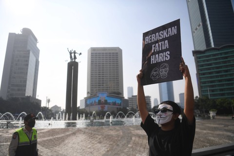 Foto: Aktivis Gelar Aksi Damai Dukung Pembebasan Haris Azhar dan Fatia