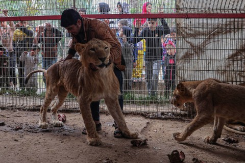 Foto: Pengungsi Palestina Berlindung dari Perang Bersama Singa Lapar