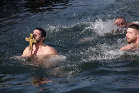 Setiap tahun umat Ortodoks memperingati pembaptisan Yesus Kristus di Sungai Yordan dengan membenamkan diri di sungai dan danau. Salib kayu yang diberkati oleh pendeta ini diyakini membawa keberuntungan di tahun mendatang bagi yang mengambilnya.