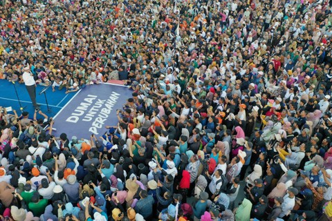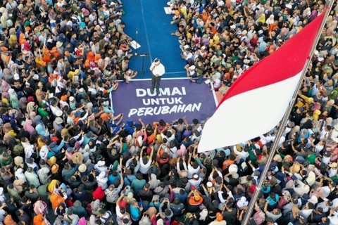 Calon presiden nomor urut 1 Anies Baswedan disambut puluhan ribu warga saat kampanye akbar di Taman Bukit Gelanggang, Dumai, Riau, Sabtu (27/1). Foto: Indrianto Eko Suwarso/ANTARA FOTODalam orasi politiknya, Anies berjanji akan membuat kebijakan pangan agromaritim sebagai satu kesatuan agar tata niaga pangan menjadi lebih baik dan pemerataan kesetaraan pendidikan berikut fasilitasnya di seluruh wilayah Indonesia. Foto: Indrianto Eko Suwarso/ANTARA FOTOFoto: Indrianto Eko Suwarso/ANTARA FOTOFoto: Indrianto Eko Suwarso/ANTARA FOTO