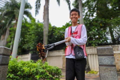 Dalam aksinya, mereka memakai sarung tangan plastik pada saat memungut sampah yang tersebar di kawasan CFD tersebut.