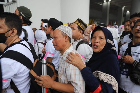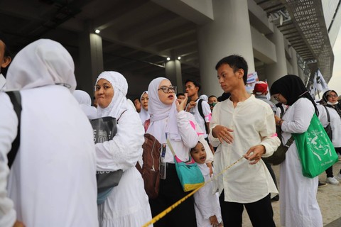 Peserta kampanye akbar berkebutuhan khusus dan anak mengantre di pintu khusus untuk masuk ke dalam Jakarta International Stadium (JIS) Sabtu (10/2/2024). Foto: Iqbal Firdaus/kumparan