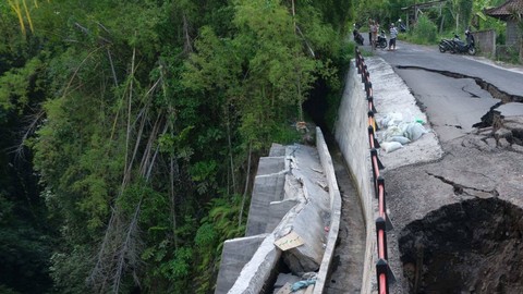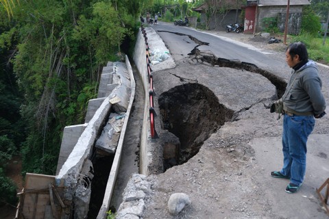Jalan umum yang menjadi akses wisata penghubung Kabupaten Bangli dan Kabupaten Gianyar tersebut ambrol pada Minggu (18/2) dini hari sekitar pukul 01.00 WITA.