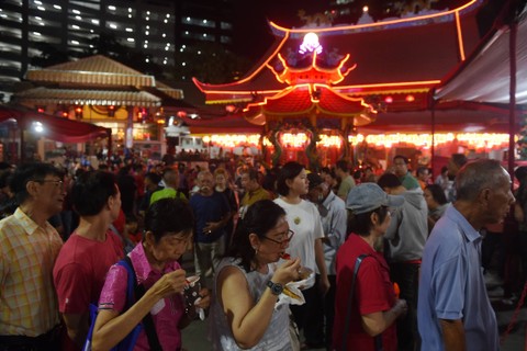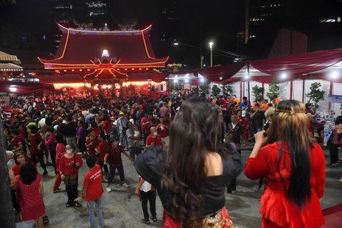 Warga keturunan Tionghoa bersembahyang saat perayaan Cap Go Meh di Wihara Amurva Bhumi, Karet Semanggi, Setiabudi, Jakarta Selatan, Jumat (23/2). Foto: Indrianto Eko Suwarso/ANTARA FOTOPerayaan Cap Go Meh merupakan penutup perayaan Tahun Baru Imlek. Foto: Indrianto Eko Suwarso/ANTARA FOTOPerayaan itu diisi dengan hiburan organ tunggal serta sajian makanan khas seperti lontong Cap Go Meh, kue pancong, dan martabak mini. Foto: Indrianto Eko Suwarso/ANTARA FOTOFoto: Indrianto Eko Suwarso/ANTARA FOTO