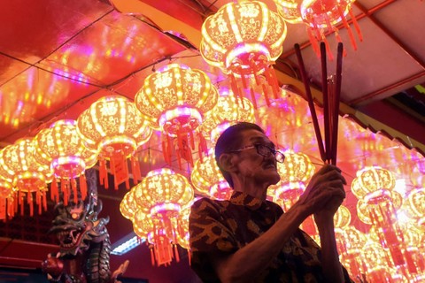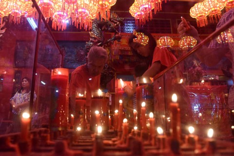 Warga keturunan Tionghoa bersembahyang saat perayaan Cap Go Meh di Vihara Amurva Bhumi, Karet Semanggi, Setiabudi, Jakarta Selatan, Jumat (23/2/2024). Foto: Indrianto Eko Suwarso/ANTARA FOTO