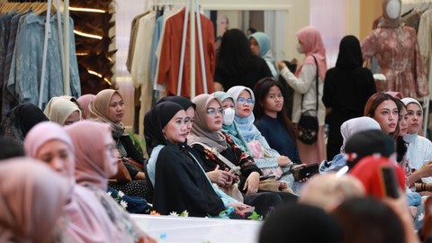 Desainer Ria Atelier, Fitria Pratiwi Muhammad memberikan tips cara memadupadankan fashion muslim pada acara Zaloraya 2024 styling di Mall Kota Kasablanka Jakarta, Sabtu (24/2). Ria Atelier by Kepompong selaku brand lokal hadir menampilkan koleksi Bubble Bloom Spring Summer.