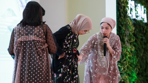Desainer Ria Atelier, Fitria Pratiwi Muhammad (kanan) pada acara fashion show Zaloraya 2024 styling di Mall Kota Kasablanka Jakarta, Sabtu (24/2). Foto: Aditia Noviansyah/kumparan