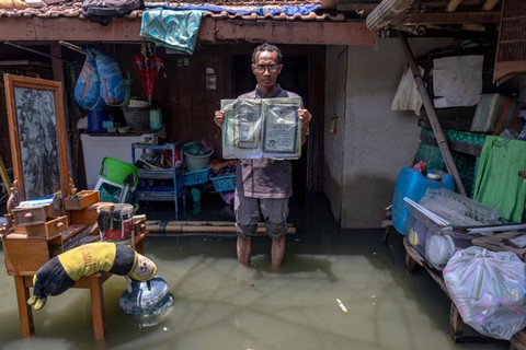 Sejumlah warga menyelamatkan barang yang masih bisa digunakan setelah banjir yang merendam rumah mereka di Desa Wonorejo, Kecamatan Karanganyar, Kabupaten Demak, Jawa Tengah, Minggu (18/2). Foto: Aji Styawan/Antara FotoBanjir yang merendam Kecamatan Karanganyar sejak 10 hari lalu akibat jebolnya tanggul Sungai Wulan yang berhasil ditangani Kementerian PUPR berangsur surut. Foto: Aji Styawan/Antara FotoNamun sejumlah titik permukiman masih ada yang terendam hingga sekitar 1 meter. Foto: Aji Styawan/Antara FotoSaat ini warga membutuhkan air bersih untuk pembersihan rumah, pakaian, dan peralatan pembersih rumah. Foto: Aji Styawan/Antara Foto