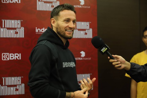 Pemain Timnas Indonesia Marc Klok diwawancarai oleh para jurnalis di kawasan Senayan, Jakarta, Minggu (17/03/2024). Foto: Iqbal Firdaus/kumparan
