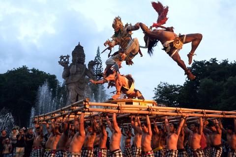 Sejumlah pemuda menampilkan fragmen tari saat pawai ogoh-ogoh pada Kasanga Festival 2024 di Denpasar, Bali, Jumat (1/3/2024). Foto: ANTARA FOTO/Nyoman Hendra WibowoPawai tersebut menampilkan 12 ogoh-ogoh anak PAUD dan 12 ogoh-ogoh terbaik se-kecamatan di Denpasar. Foto: ANTARA FOTO/Nyoman Hendra WibowoPawai ogoh-ogoh digelar untuk menyambut Hari Raya Nyepi Tahun Baru Saka 1946. Foto: ANTARA FOTO/Nyoman Hendra WibowoFoto: Fikri Yusuf/ANTARA FOTO