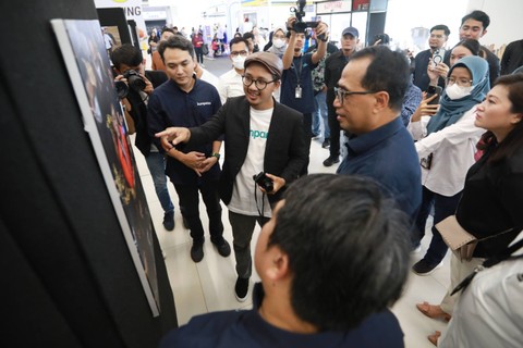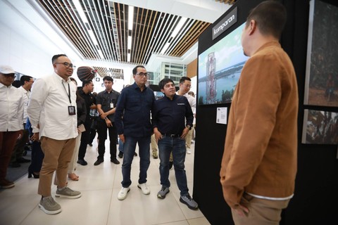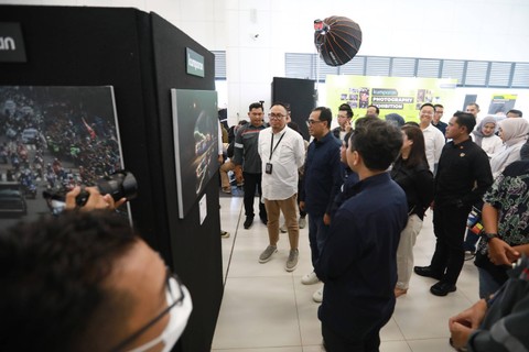 Usai meresmikan, Budi Karya didampingi Pemimpin Redaksi kumparan Arifin Asydhad, Dirut PT KCIC Dwiyana Slamet Riyadi, Direktur Operasional & Pemeliharaan PT MRT Jakarta, Mega Tarigan hingga perwakilan kolaborator kumparan meninjau foto-foto terbaik fotografer kumparan dan kolaborator.