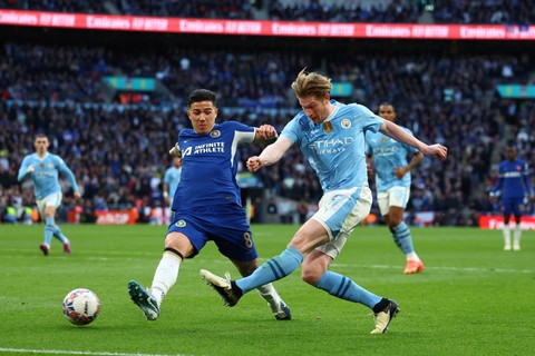 Manchester City meraih kemenangan saat menghadapi Chelsea pada laga semifinal Piala FA 2023/24. Bertanding di Stadion Wembley, London, Inggris, Sabtu (20/4) malam WIB, Man City menang tipis 1-0.
