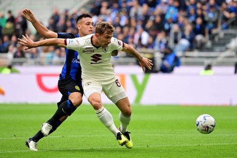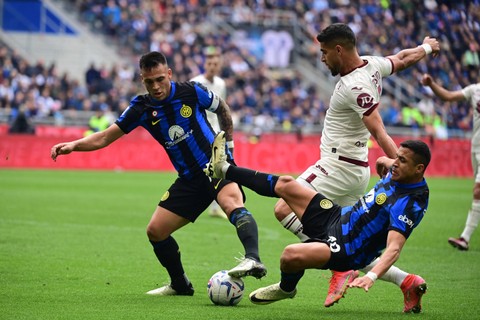 Inter Milan meraih kemenangan saat menjamu Torino pada laga lanjutan Liga Italia 2023/24. Bertanding di Stadion San Siro, Milan, Italia, Minggu (28/4), Inter menang 2-0.