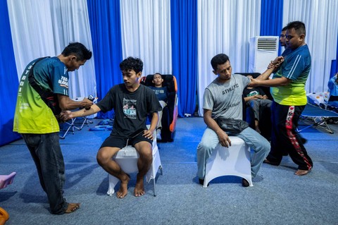 Sejumlah pemudik memanfaatkan layanan pijat gratis di rest area UPPKB Losarang, Indramayu, Jawa Barat, Sabtu (6/4). Foto: Bayu Pratama S/ANTARA FOTOBagi pemudik yang menggunakan jalur Pantura, pijat gratis di area itu bisa menjadi tempat istirahat sekaligus mengisi tenaga untuk perjalanan jauh ke kampung halaman. Foto: Bayu Pratama S/ANTARA FOTOPara terapis dari UMKM rumah Sehat Terapi ini akan memijat pemudik selama 5 menit. Foto: Bayu Pratama S/ANTARA FOTOPara terapis dari UMKM rumah Sehat Terapi ini akan memijat pemudik selama 5 menit. Foto: Bayu Pratama S/ANTARA FOTOSelain pijat gratis, rest area UPPKB Losarang juga menyediakan posko kesehatan. Foto: Bayu Pratama S/ANTARA FOTO