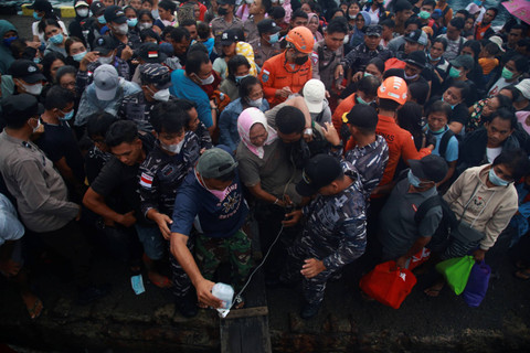 Evakuasi warga terdampak erupsi Gunung Ruang di Tagulandang, Kepulauan Sitaro, Sulawesi Utara, terus dilanjutkan pada Kamis (2/5). Foto: Andri Saputra/ ANTARA FOTOProses evakuasi warga yang terdampak erupsi Gunung Ruang terus dilakukan dengan melibatkan sejumlah armada kapal dari berbagai instansi. Foto: Andri Saputra/ ANTARA FOTOPusat Vulkanologi dan Mitigasi Bencana Geologi (PVMBG) menetapkan Gunung Ruang dalam status awas atau level IV. Peningkatan ini membuat PVMBG meningkatkan area bahaya menjadi radius 7 kilometer dari kawah Gunung Ruang. Foto: Andri Saputra/ ANTARA FOTOPVMBG juga meminta warga mewaspadai lontaran batu pijar akibat erupsi Gunung Ruang. Selain itu juga potensi tsunami yang mungkin terjadi. Foto: Andri Saputra/ ANTARA FOTO