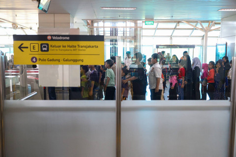 Sejumlah anak-anak dan para pendamping menaiki LRT Jakarta di Stasiun LRT Velodrome, Jakarta, Minggu (30/6/2024). Foto: Iqbal Firdaus/kumparan