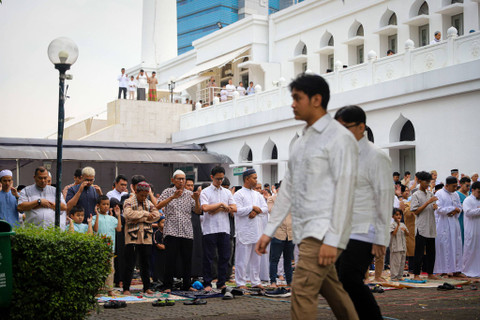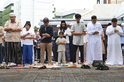 Sejumlah umat muslim melaksanakan salat Idul Adha 1445 H di Masjid Al-Azhar, Jakarta, Minggu (16/6/2024). Foto: Iqbal Firdaus/kumparan