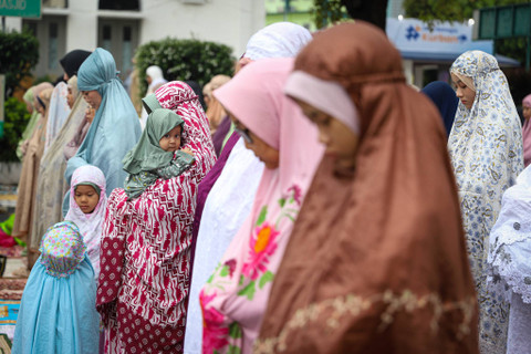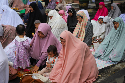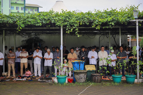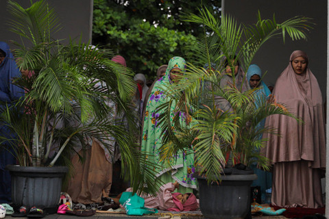 Meski begitu, para jemaah nampak khusyuk mengikuti rangkaian Salat Id.