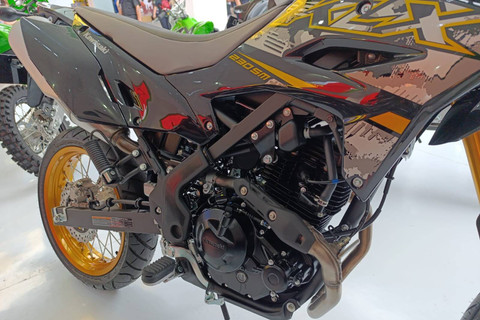 Kawasaki KLX 230 yang di pamerkan Pekan Raya Jakarta (PRJ) atau Jakarta Fair 2024 di JIExpo Kemayoran. Foto: Fitra Andrianto/kumparan