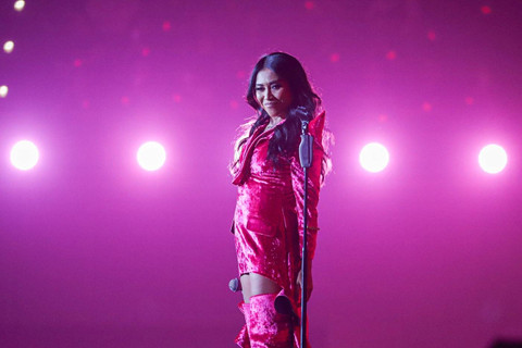 Penyanyi Anggun C. Sasmi tampil dalam konser tunggal bertajuk #enchantingANGGUN di Plenary Hall, Jakarta Convention Center, Jakarta, Minggu (28/7/2024). Foto: Iqbal Firdaus/kumparan