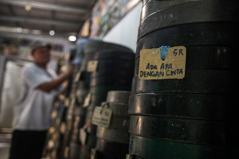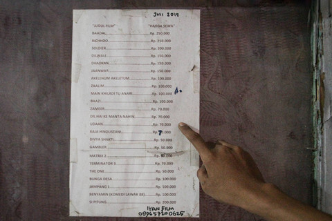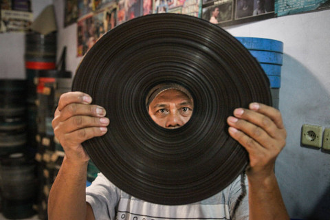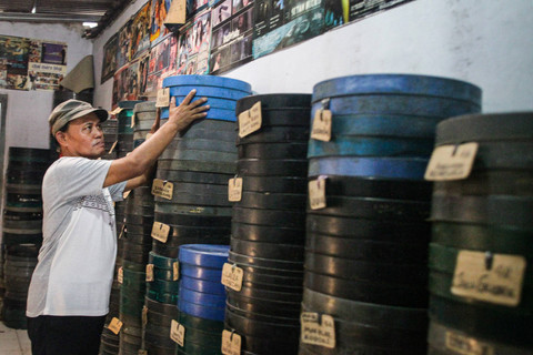 Gencarnya perkembangan era digital saat ini, industri film seluloid 35 mm untuk layar tancap belum tergerus. Foto: Darryl Ramadhan/kumparanNur Iyan, salah satu penyedia jasa penyewaan film untuk layar tancap di Pamulang, Tangsel, salah satunya. Foto: Darryl Ramadhan/kumparanPria berusia 50 tahun ini telah menggeluti bisnis layar tancap sejak 2003. Foto: Darryl Ramadhan/kumparanKini, Nur Iyan memiliki 450 judul film seluloid dari berbagai genre dengan format 35 mm dari tahun 1976 hingga 2013. Foto: Darryl Ramadhan/kumparanBanyak penyewa film dari berbagai daerah di Jabodetabek datang kerumahnya. Foto: Darryl Ramadhan/kumparanHarga sewa film 35 mm yang ditawakan Nur Iyan bervariasi, mulai dari Rp 100 ribu hingga Rp 500 ribu per judul film. Foto: Darryl Ramadhan/kumparanNur Iyan mengaku, film 35 masih digemari semua kalangan, khususnya mahasiwa. Foto: Darryl Ramadhan/kumparanDalam sebulan, ia bisa menyewakan 20 judul film 35 mm. Foto: Darryl Ramadhan/kumparanFoto: Darryl Ramadhan/kumparan