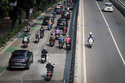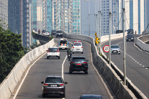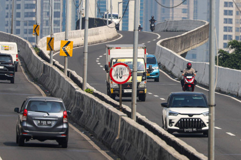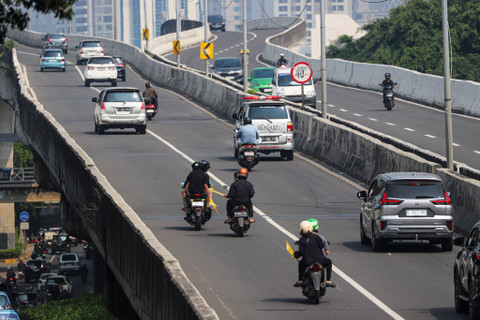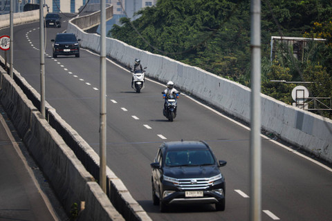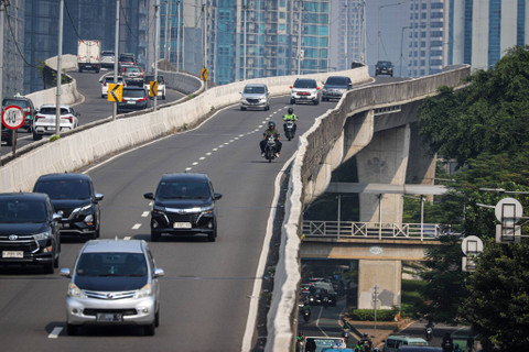 Sejumlah pemotor melintas jalan layang non tol (JLNT) Casablanca, Jakarta Selatan, Senin (29/7/2024). Foto: Iqbal Firdaus/kumparan