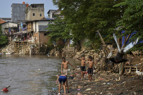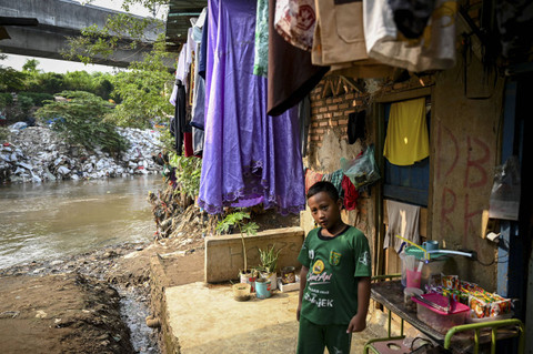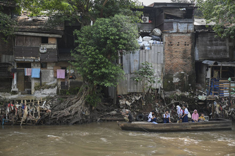 Sejumlah warga menyeberangi sungai di antara permukiman kumuh menggunakan perahu eretan di kawasan Manggarai, Jakarta, Senin (5/8). Foto: Fauzan/ANTARA FOTORumah dengan kategori kumuh akan dilakukan penataan oleh Pemerintah Provinsi DKI Jakarta yang menargetkan sebanyak 450 Rukun Warga (RW) atau 16,39 persen dari 2.744 RW di Jakarta. Foto: Fauzan/ANTARA FOTOPenataan tersebut ditargetkan akan selesai pada 2027 sesuai dengan rancangan peraturan daerah (Raperda) rencana tata ruang wilayah (RTRW) DKI Jakarta tahun 2024-2044. Foto: Fauzan/ANTARA FOTOFoto: Fauzan/ANTARA FOTO