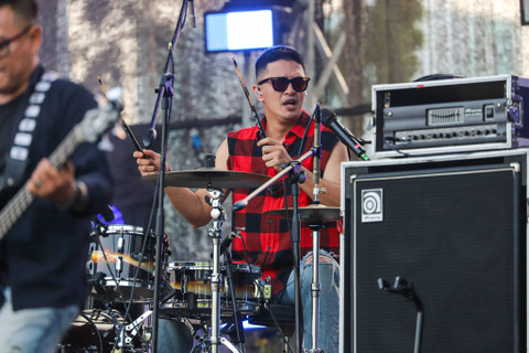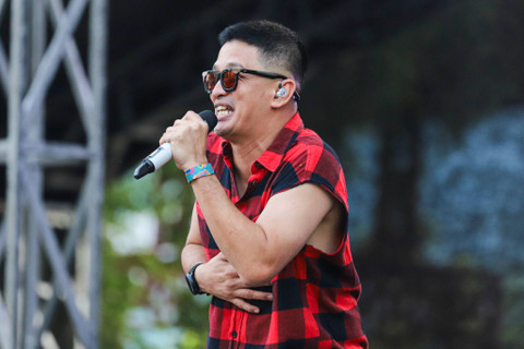 Pentolan grup musik D.O.T, Eza Yayang saat tampil di The 90's Festival 2024 di Gambir Expo Kemayoran, Jakarta, Minggu (11/8/2024). Foto: Iqbal Firdaus/kumparan