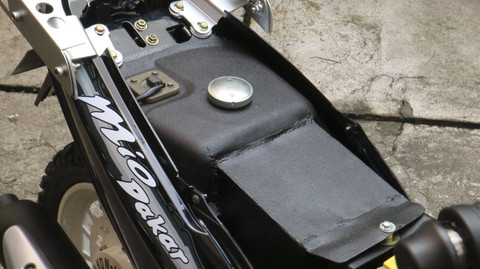 Pasar Yamaha Mio memang sedang naik daun, biasanya motor yang pertama kali dipasarkan tahun 2003 ini di restorasi ke wujud original atau di restorasi modifikasi (restomod). Foto: Dok. Imam Abraham/Gashakon.coNamun, di tangan Penggawa Bengkel Gashakon.co Bandung, Imam Abraham Yamaha Mio tahun lansiran 2006 (non step) ini punya tampilan berbeda. Foto: Dok. Imam Abraham/Gashakon.coMotornya yang dipinang dalam kondisi bobrok ini tampil ganteng dengan konsep Semi Dakar. Foto: Dok. Imam Abraham/Gashakon.coInspirasinya, kata Imam dari motor matic adventure tahun 80-an seperti Yamaha Zuma dan Honda Dio Baja. Foto: Dok. Imam Abraham/Gashakon.coKonsep tersebut dia pilih karena ingin perspektif baru untuk modifikasi matic dari bahan Yamaha Mio. Foto: Dok. Imam Abraham/Gashakon.coUbahan yang paling terlihat adalah bagian depan. Setangnya dicustom jadi lebih tinggi dan lebar. Foto: Dok. Imam Abraham/Gashakon.coUntuk bikin kesan dakarnya, housing lampu disesuaikan lagi dengan tema dakar nya menggunakan besi 18mm. Foto: Dok. Imam Abraham/Gashakon.coBagian body depan juga dikastem pakai besi sebagai tulang dan resin sebagai finishing untuk dipasang lampu foglamp 3 inci. Foto: Dok. Imam Abraham/Gashakon.coSpeedometer juga dicustom rumahnya dengan 3d print untuk menyesuaikan stang dan housing lampu yang baru agar selaras. Foto: Dok. Imam Abraham/Gashakon.coVelgnya juga dibukin dari 0 yang disesuaikan dengan tema adventure-nya. Bahannya dari pelat 6 mm yang di laser, sementara ring luarnya pakai merek DID bawaan orinya. Foto: Dok. Imam Abraham/Gashakon.co